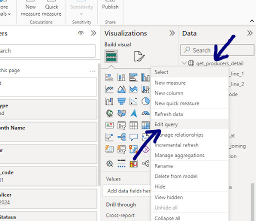 Or In Power BI Desktop, right-click on your dataset under Fields (‘get_producer_details’ in this case), and select Edit query.