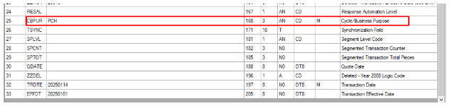 Element definition: The Cycle/Business Purpose is a 3-letter code that shows the reason or type of business activity for the transaction.