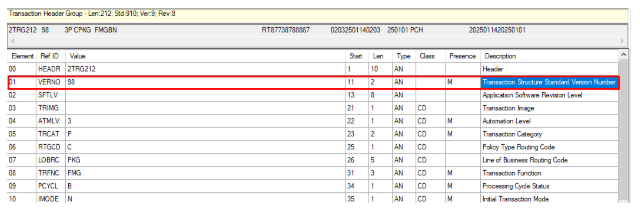 Element Definition: This data element shows the version number of the ACORD Transaction Structure Standard (Standard No. 910) that was used to build the transaction.